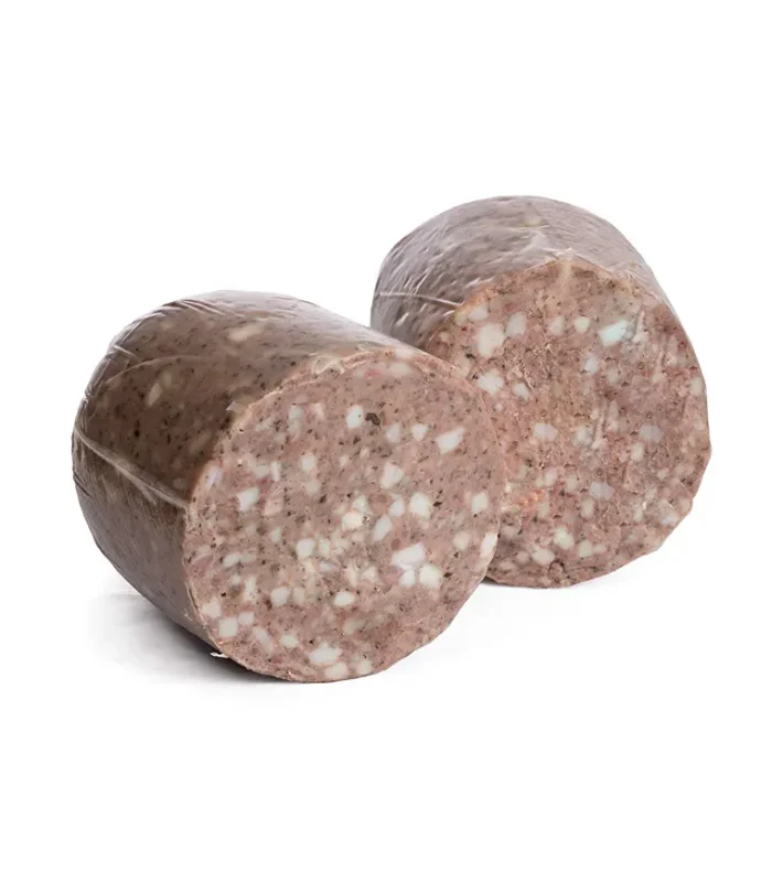 10% Schweinekopffleisch ,10% Wammen ,18% Speckwürfel gekocht ,24% Weizenmehl ,24% Zwerchfell gekocht ,4% frische Schweineleber ,5% Brühe ,5% Zwiebeln |